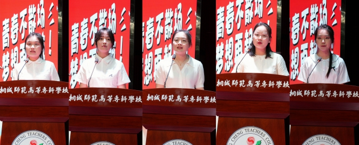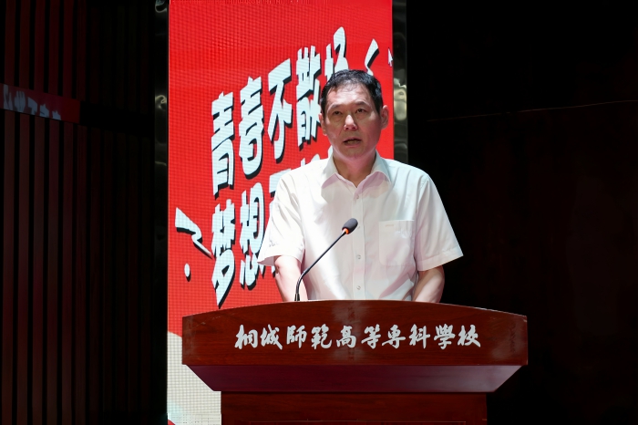 畢業生代表小學教育係郝夢瑤、藝術與設計係彭夢圓深情回顧成長點滴,感恩母校培育之情;教師代表楊晗以“三尺講台寫春秋,一片丹心育桃李”寄語學子永葆初心;校友代表黃亞麗(文昌幼教集團園長)分享踐行“學高為師,德高為範”校訓的奮鬥曆程;在校生代表彭子婕承諾賡續桐師精神,接續奮鬥薪火。說明:講話合並