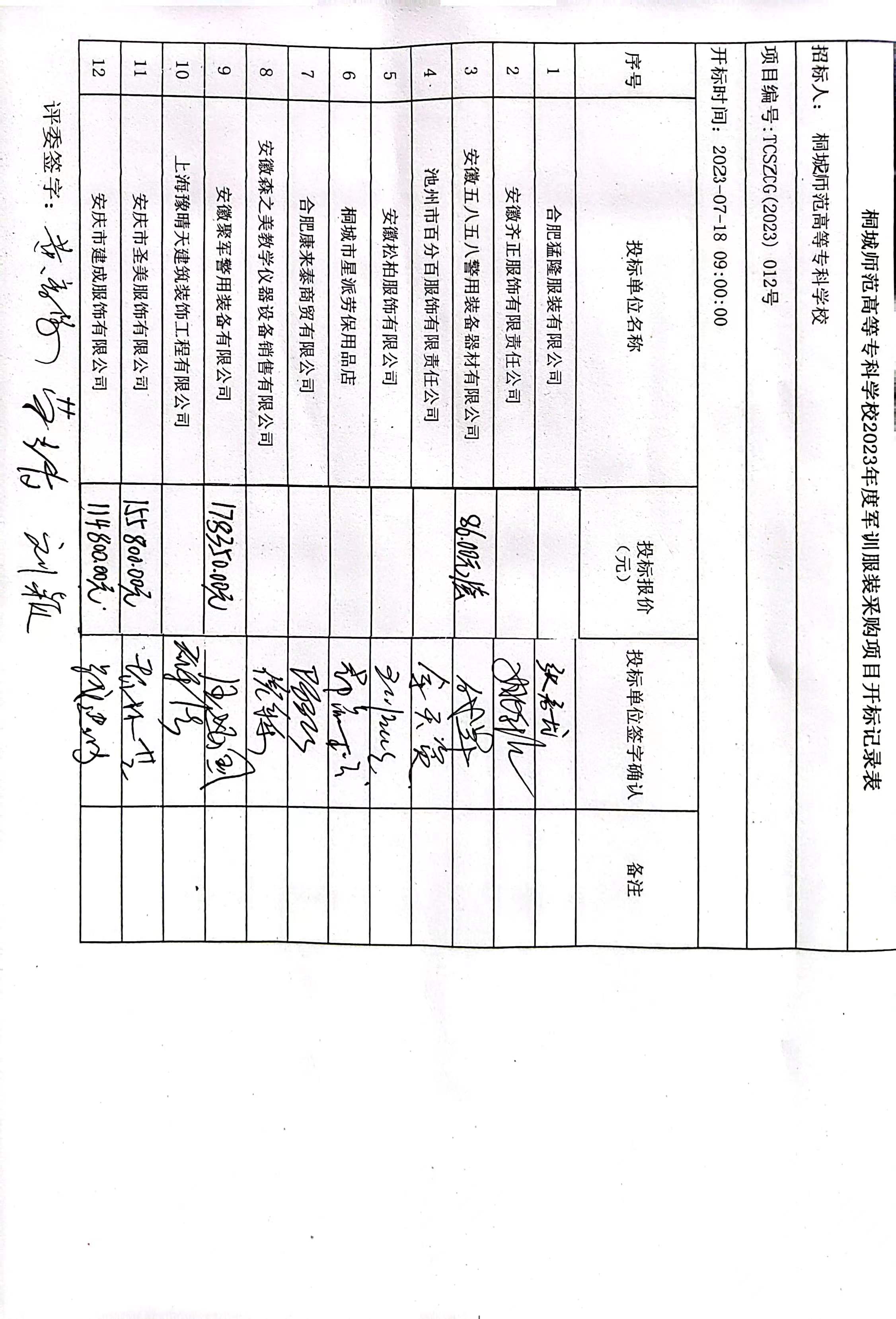 桐城師範高等專科學校2023年度軍訓服裝采購項目中標結果公示