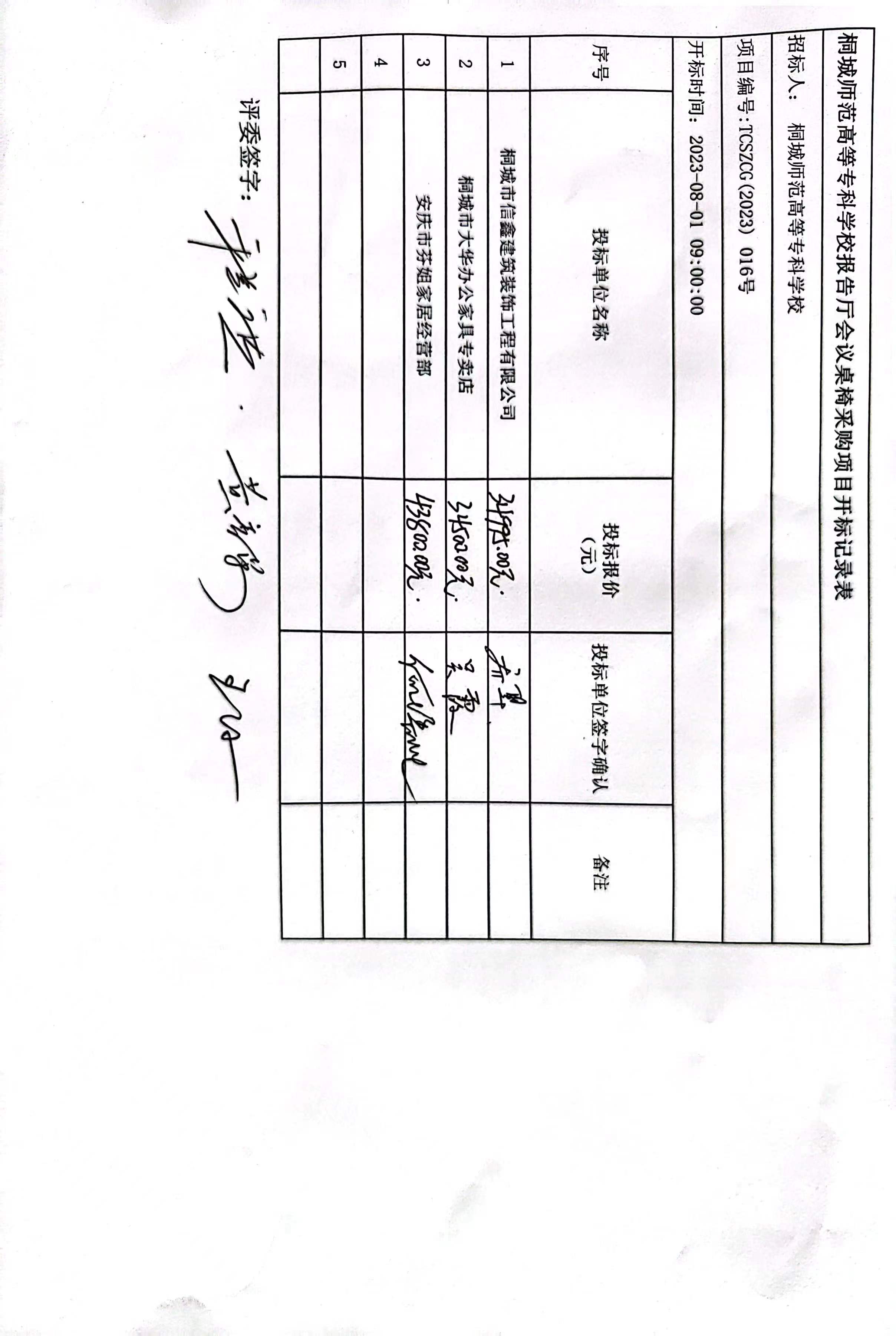 項目名稱:桐城師範高等專科學校報告廳會議桌椅采購項目 服務範圍:桐城師範高等專科學校報告廳會議桌椅采購項目 服務要求:符合詢價文件要求 合同履行期限:20個日曆天 服務標準:符合詢價文件要求 |