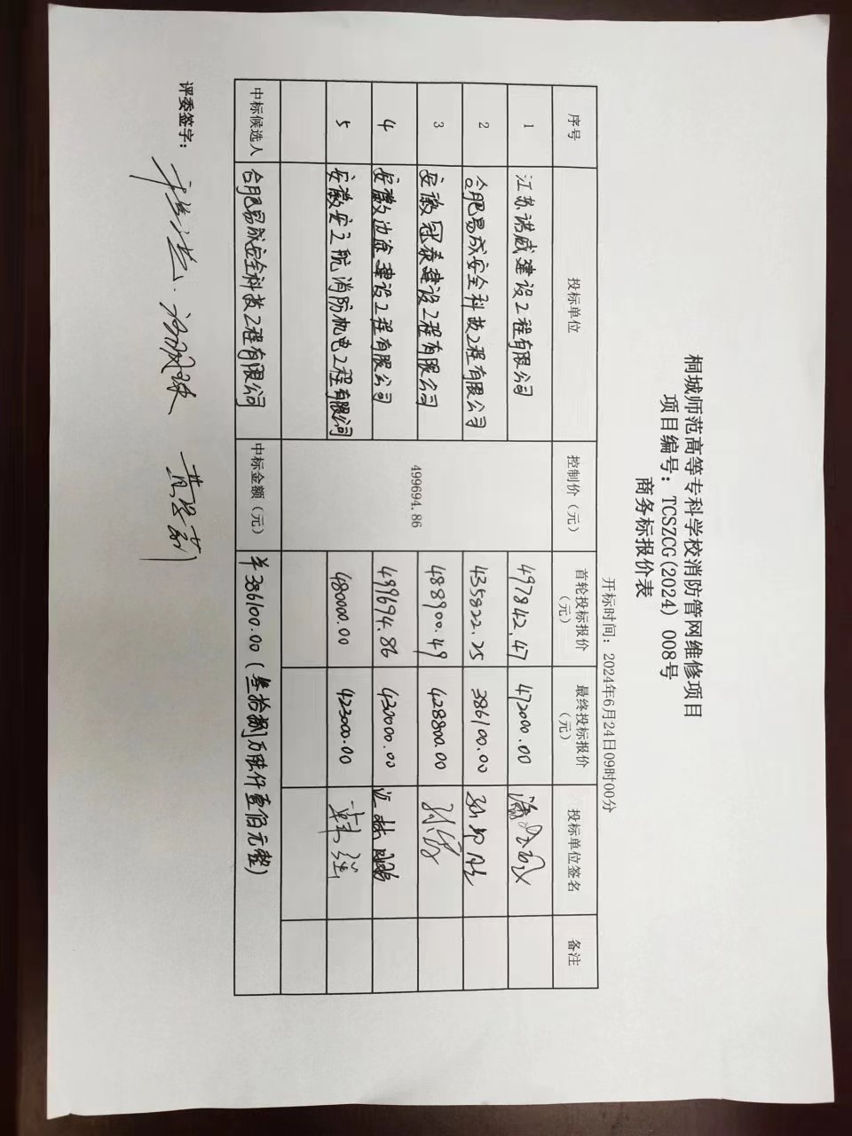 桐城師範高等專科學校消防管網維修項目中標結果公示