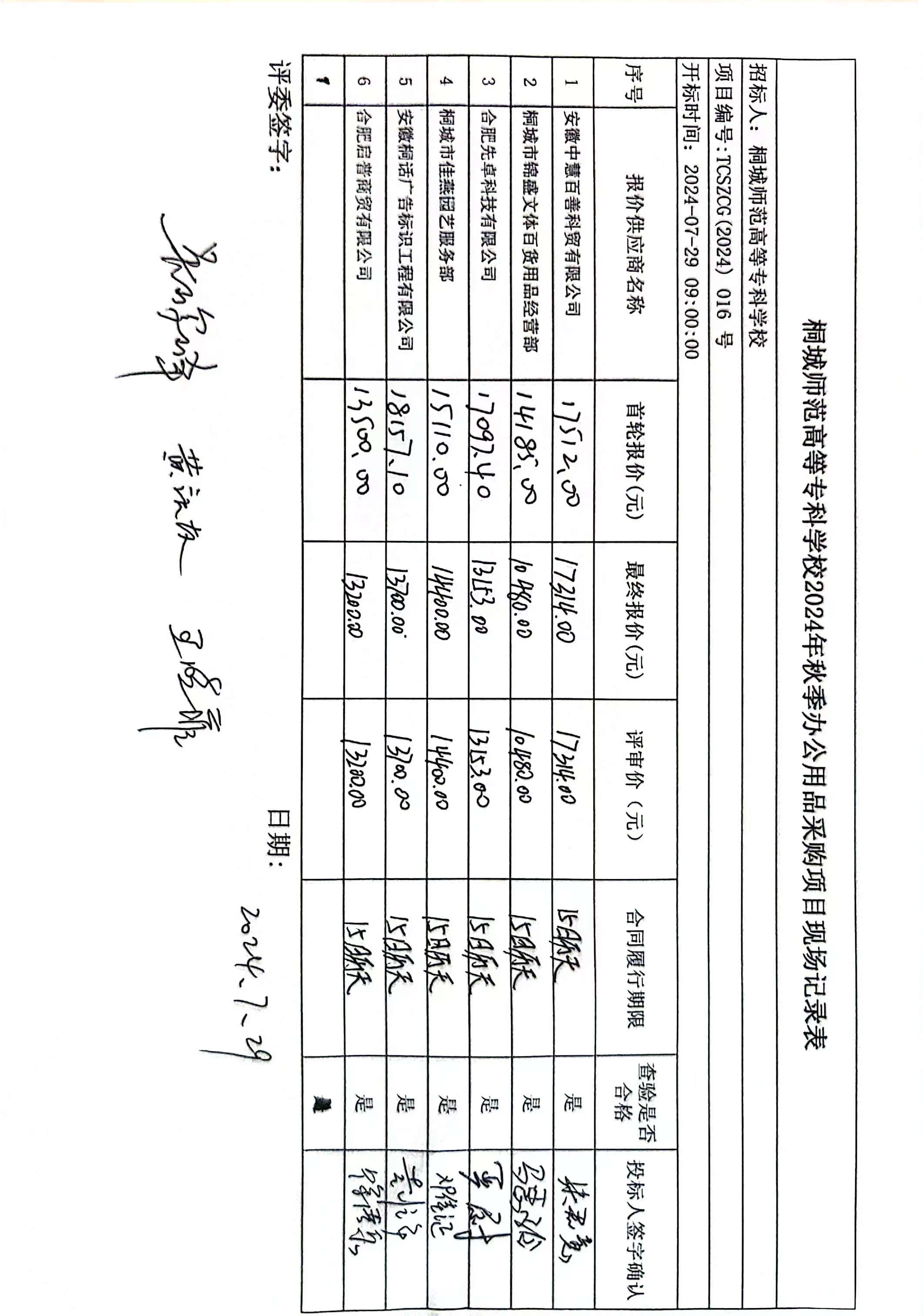 項目名稱:桐城師範高等專科學校2024年秋季辦公用品采購項目 招標範圍:桐城師範高等專科學校2024年秋季辦公用品采購項目 服務要求:符合談判文件要求 合同履行期限:15日曆天 質量標準:符合談判文件要求 |