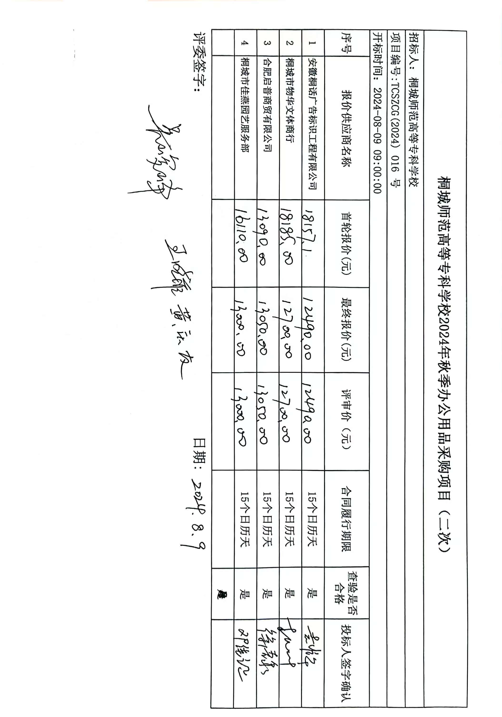 項目名稱:桐城師範高等專科學校2024年秋季辦公用品采購項目(二次) 招標範圍:桐城師範高等專科學校2024年秋季辦公用品采購項目(二次) 服務要求:符合談判文件要求 合同履行期限:15日曆天 質量標準:符合談判文件要求 |