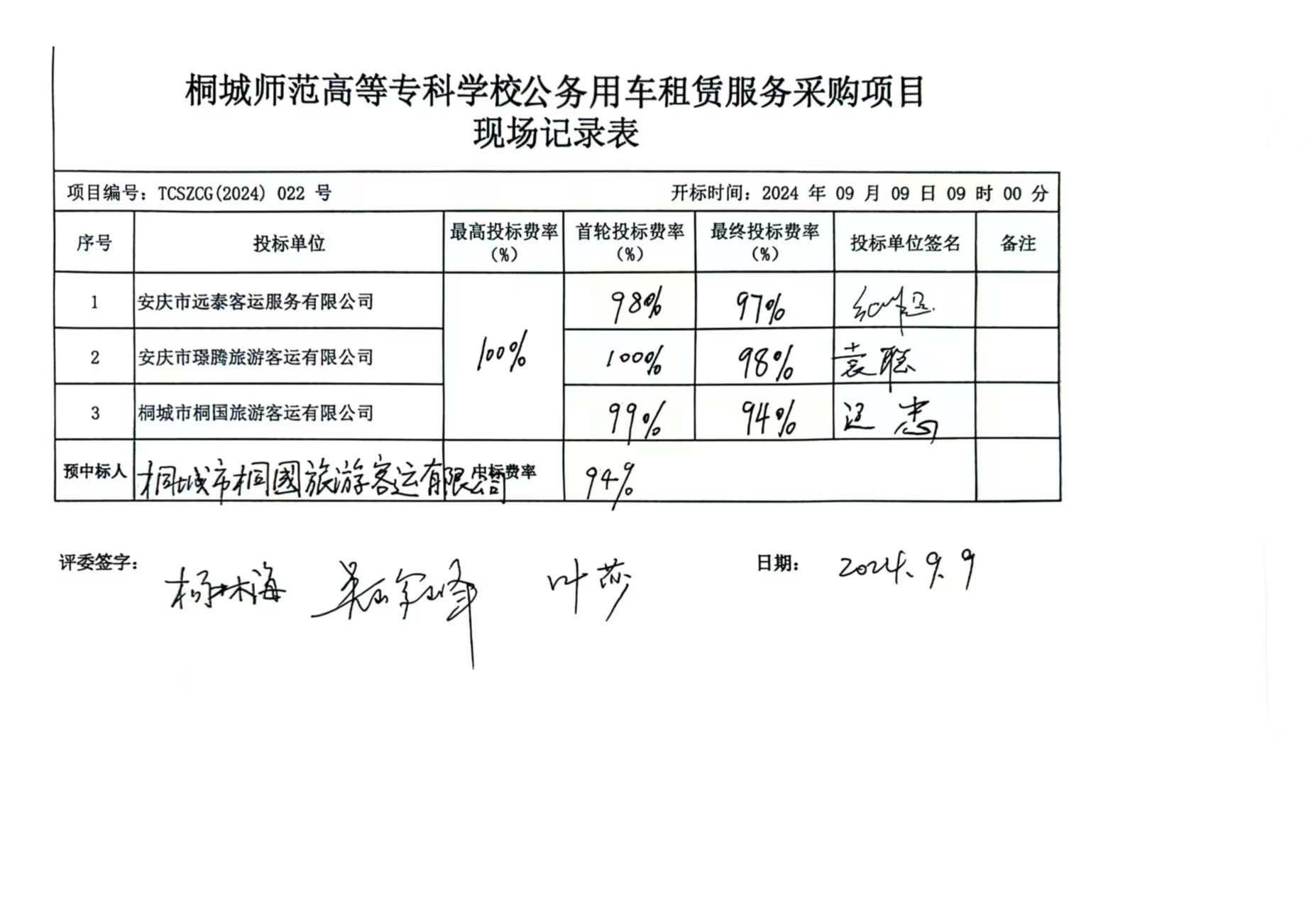 桐城師範高等專科學校公務用車租賃服務采購項目中標結果公示