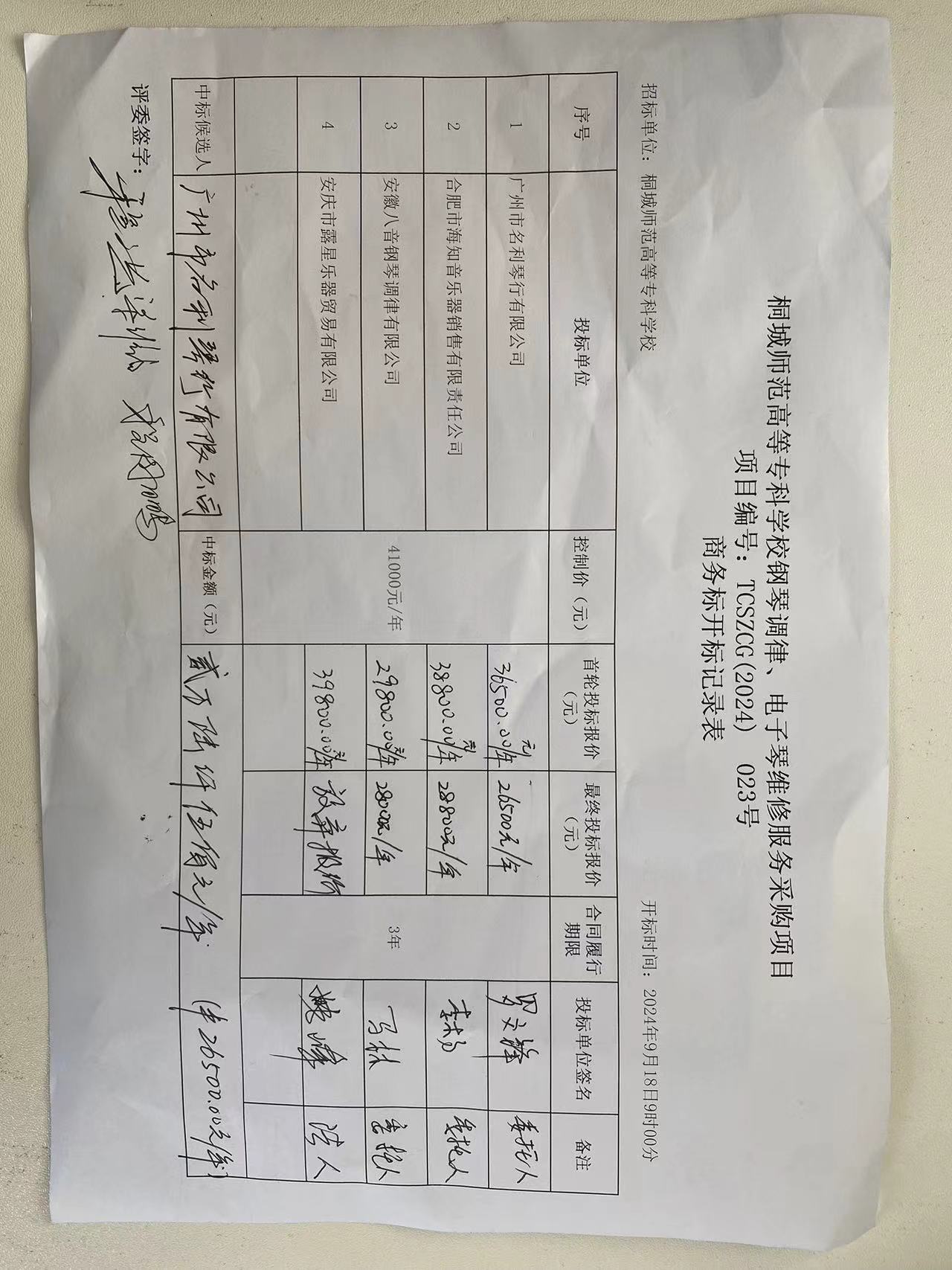 項目名稱:桐城師範高等專科學校鋼琴調律、電子琴維修服務采購項目 服務範圍:桐城師範高等專科學校鋼琴調律、電子琴維修服務采購項目 服務要求:符合談判文件要求 合同履行期限:3年 服務標準:符合談判文件要求 |