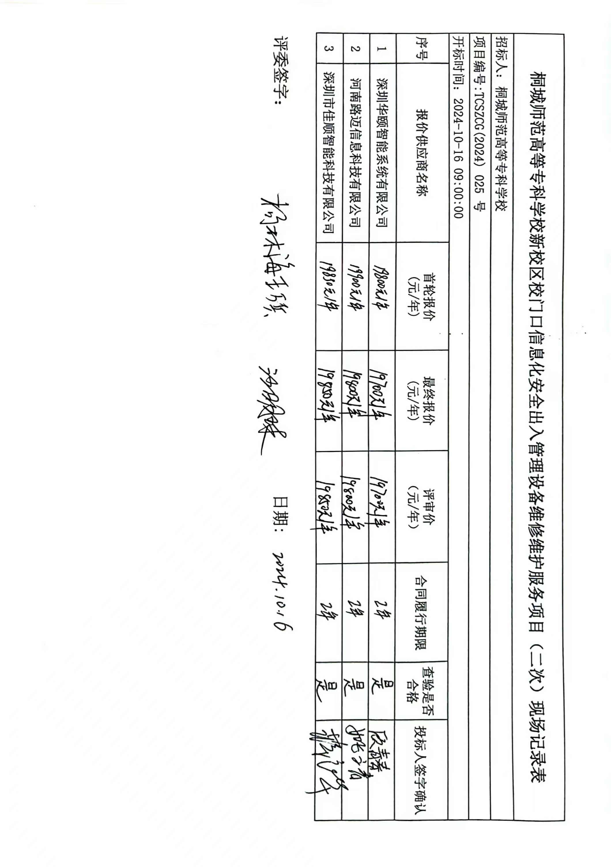 項目名稱:桐城師範高等專科學校新校區校門口信息化安全出入管理設備維修維護服務項目(二次) 招標範圍:桐城師範高等專科學校新校區校門口信息化安全出入管理設備維修維護服務項目(二次) 服務要求:符合談判文件要求 合同履行期限:2年 服務標準:符合談判文件要求 |