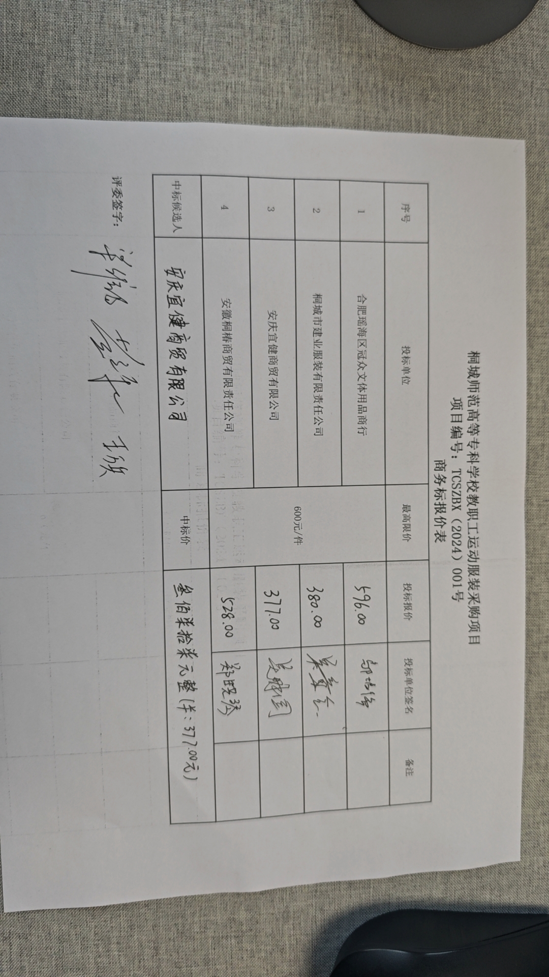 項目名稱:桐城師範高等專科學校教職工運動服裝采購項目 招標範圍:桐城師範高等專科學校教職工運動服裝采購項目 質量要求:符合比選文件要求 合同履行期限:7個日曆天 質量標準:合格 |