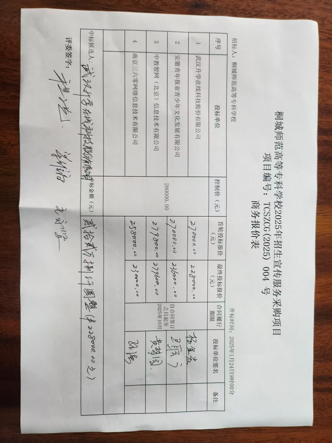 項目名稱:桐城師範高等專科學校2025年招生宣傳服務采購項目 服務範圍:桐城師範高等專科學校2025年招生宣傳服務采購項目 服務要求:符合談判文件要求 合同履行期限:自合同簽訂之日起至2025年10月 服務標準:符合談判文件要求 |