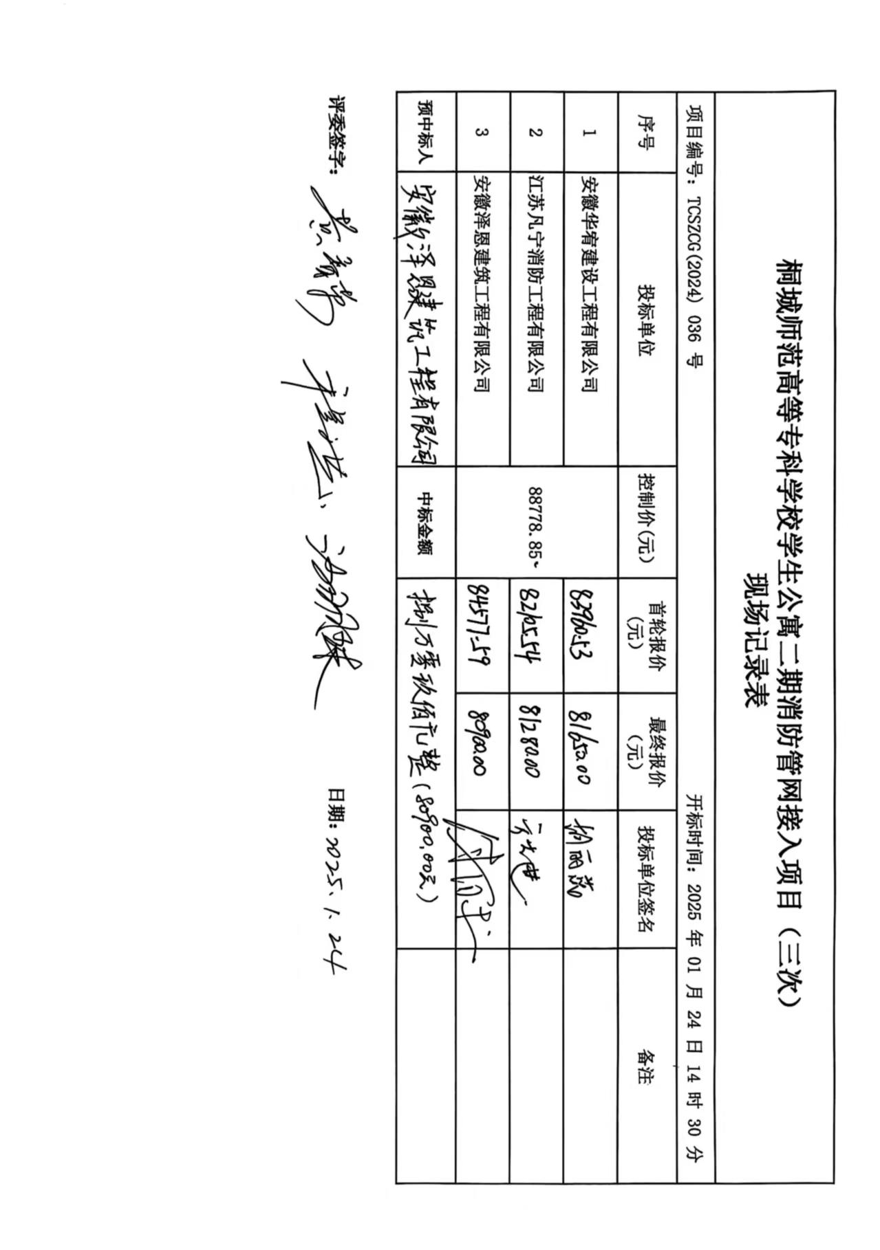 桐城師範高等專科學校學生公寓二期消防管網接入項目(三次)中標結果公示