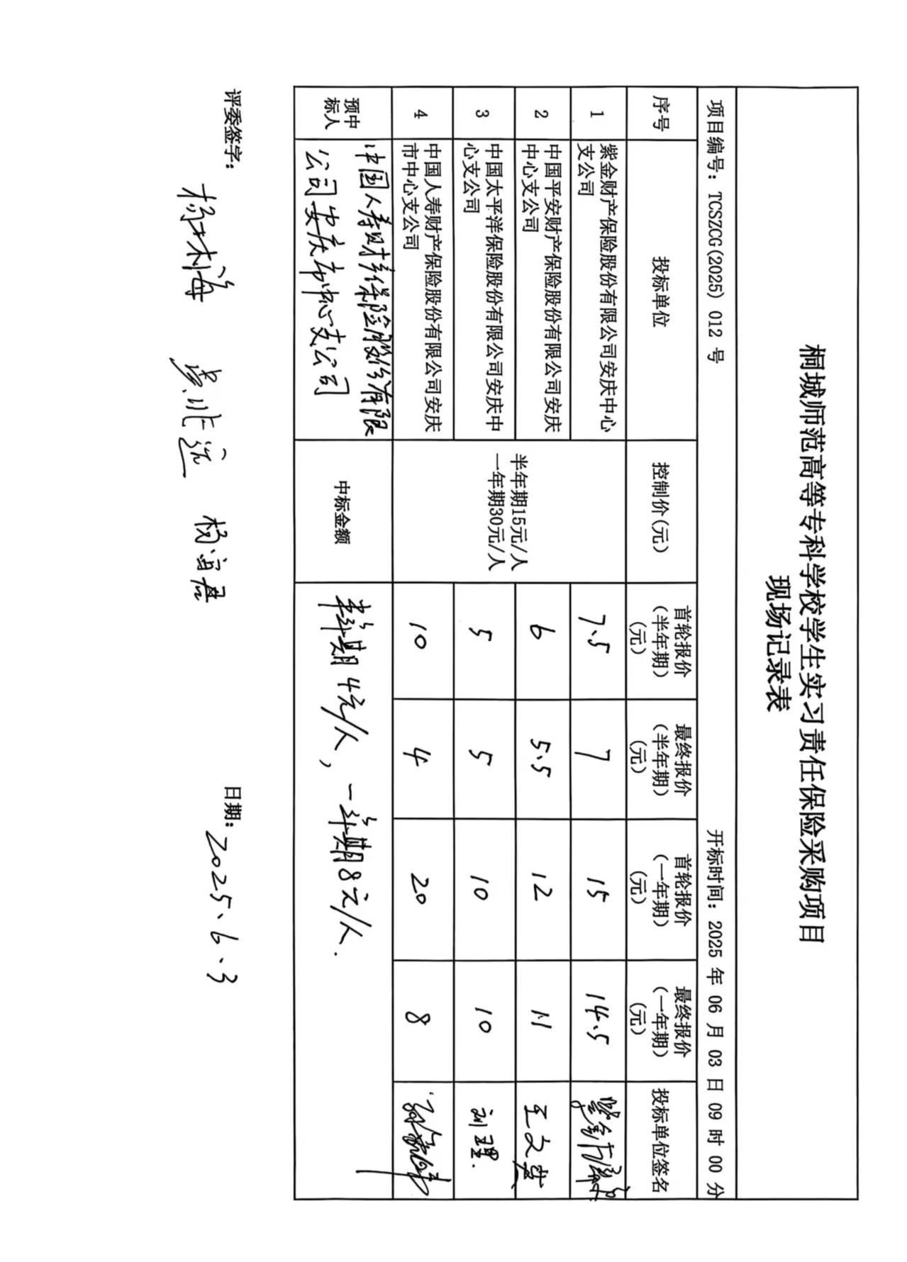 桐城師範高等專科學校學生實習責任保險采購項目中標結果公示