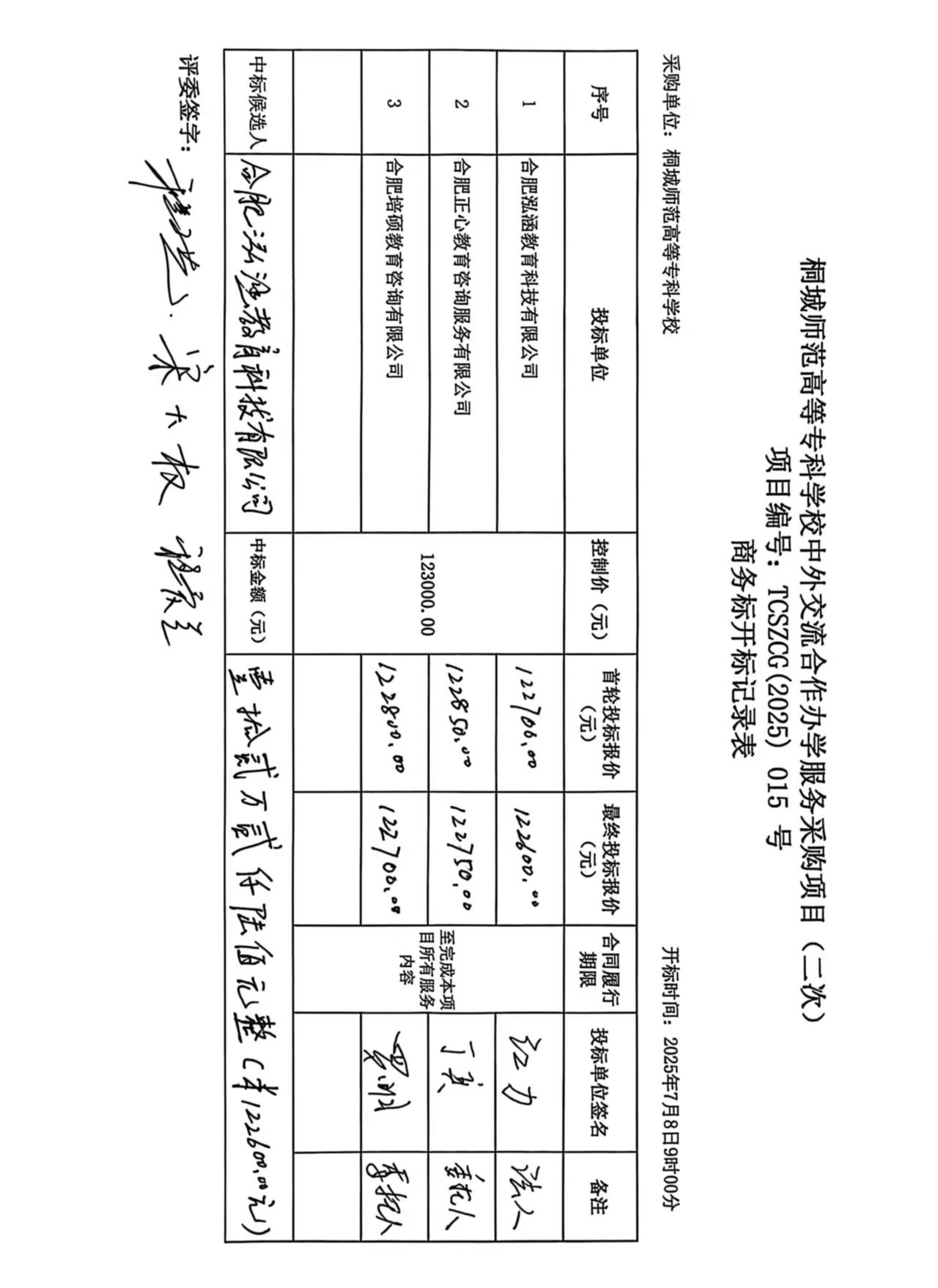 項目名稱:桐城師範高等專科學校中外交流合作辦學服務采購項目(二次) 服務範圍:桐城師範高等專科學校中外交流合作辦學服務采購項目(二次) 服務要求:符合談判文件要求 合同履行期限:至完成本項目所有服務內容 服務標準:符合談判文件要求 |