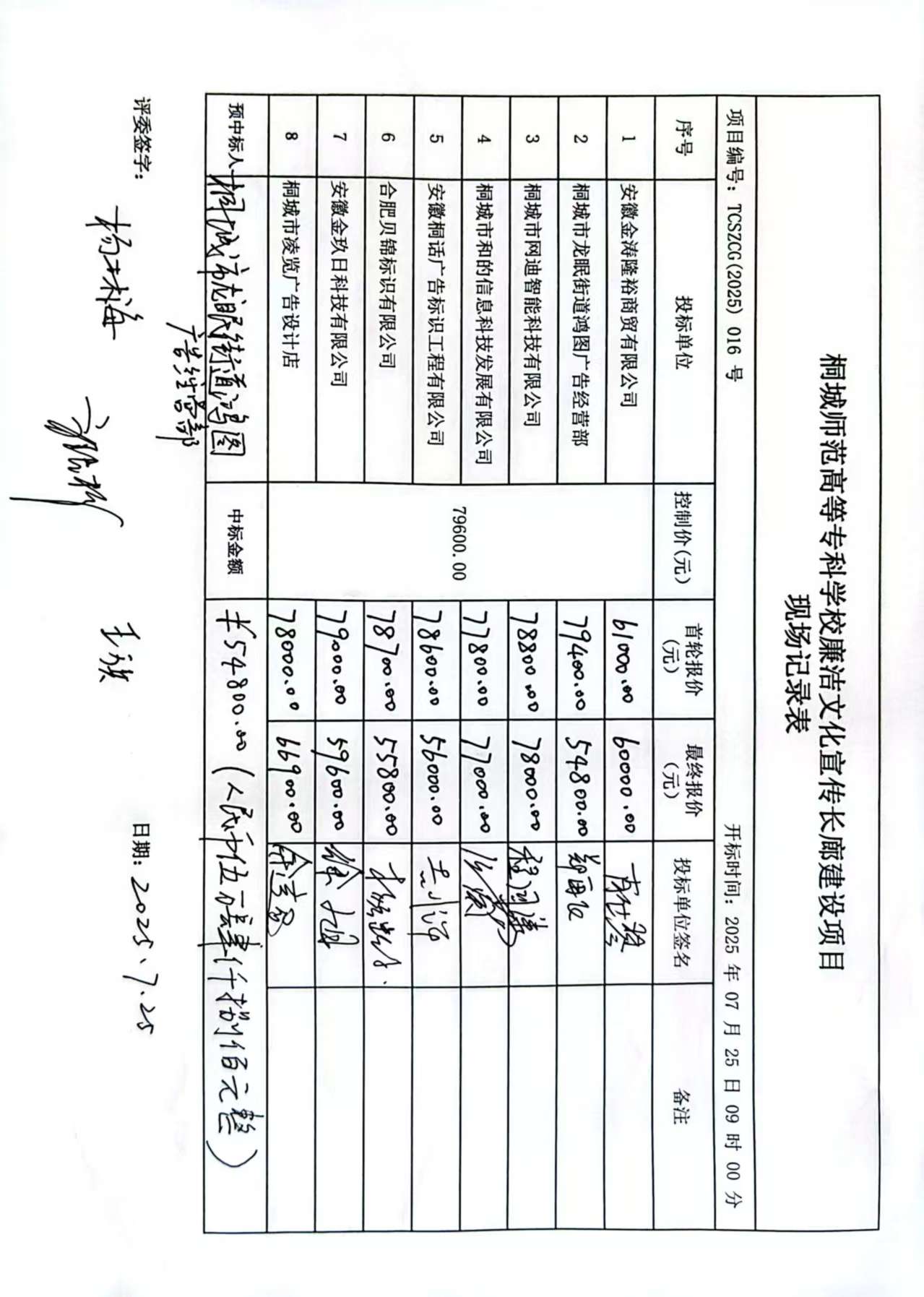 項目名稱:桐城師範高等專科學校廉潔文化宣傳長廊建設項目 招標範圍:桐城師範高等專科學校廉潔文化宣傳長廊建設項目 服務要求:符合談判文件要求 合同履行期限:30日曆天。 服務標準:符合談判文件要求 |