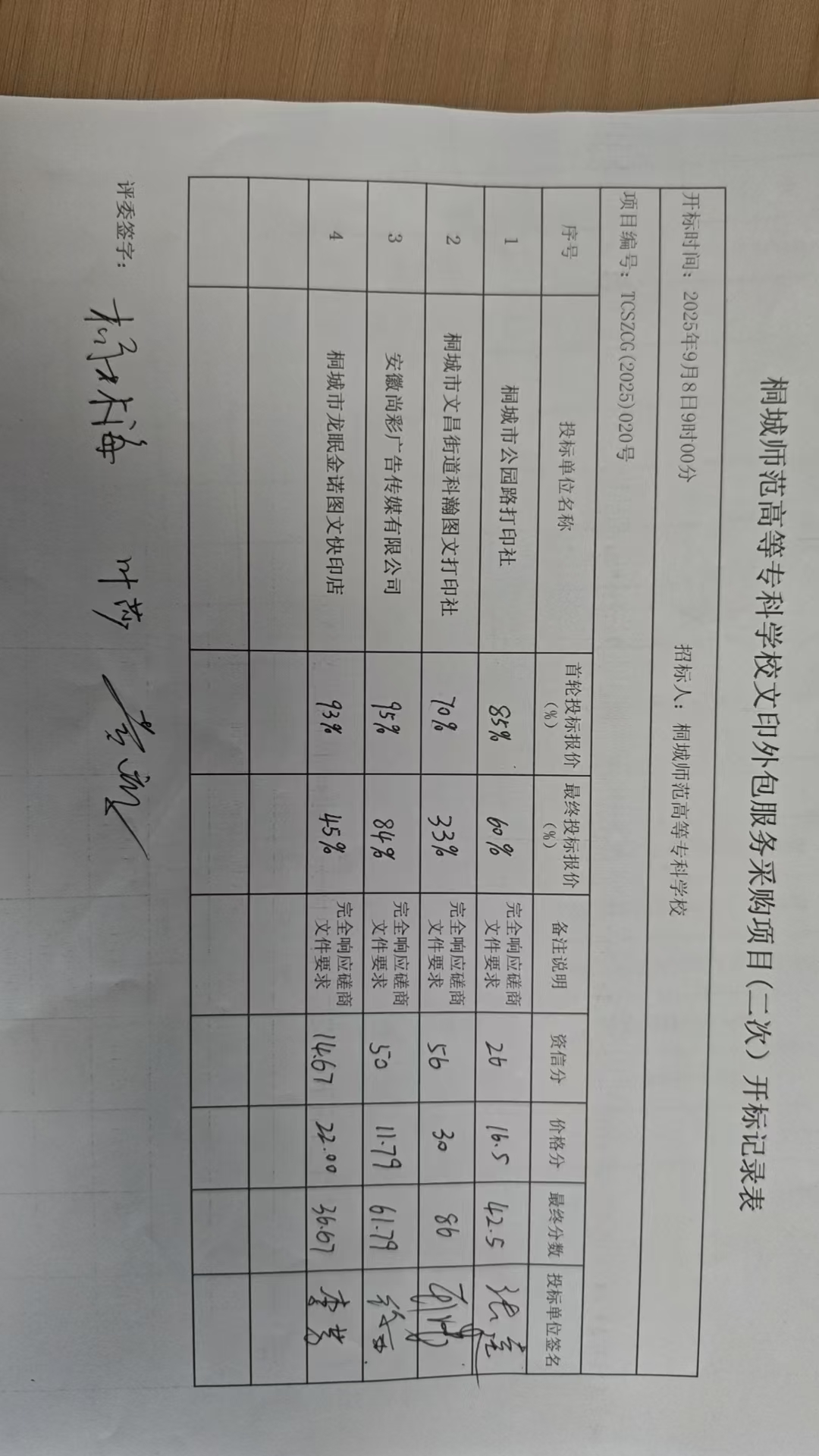 項目名稱:桐城師範高等專科學校文印外包服務采購項目(二次) 招標範圍:桐城師範高等專科學校文印外包服務采購項目(二次) 服務要求:符合磋商文件要求 合同履行期限:一年 服務標準:符合磋商文件要求 |