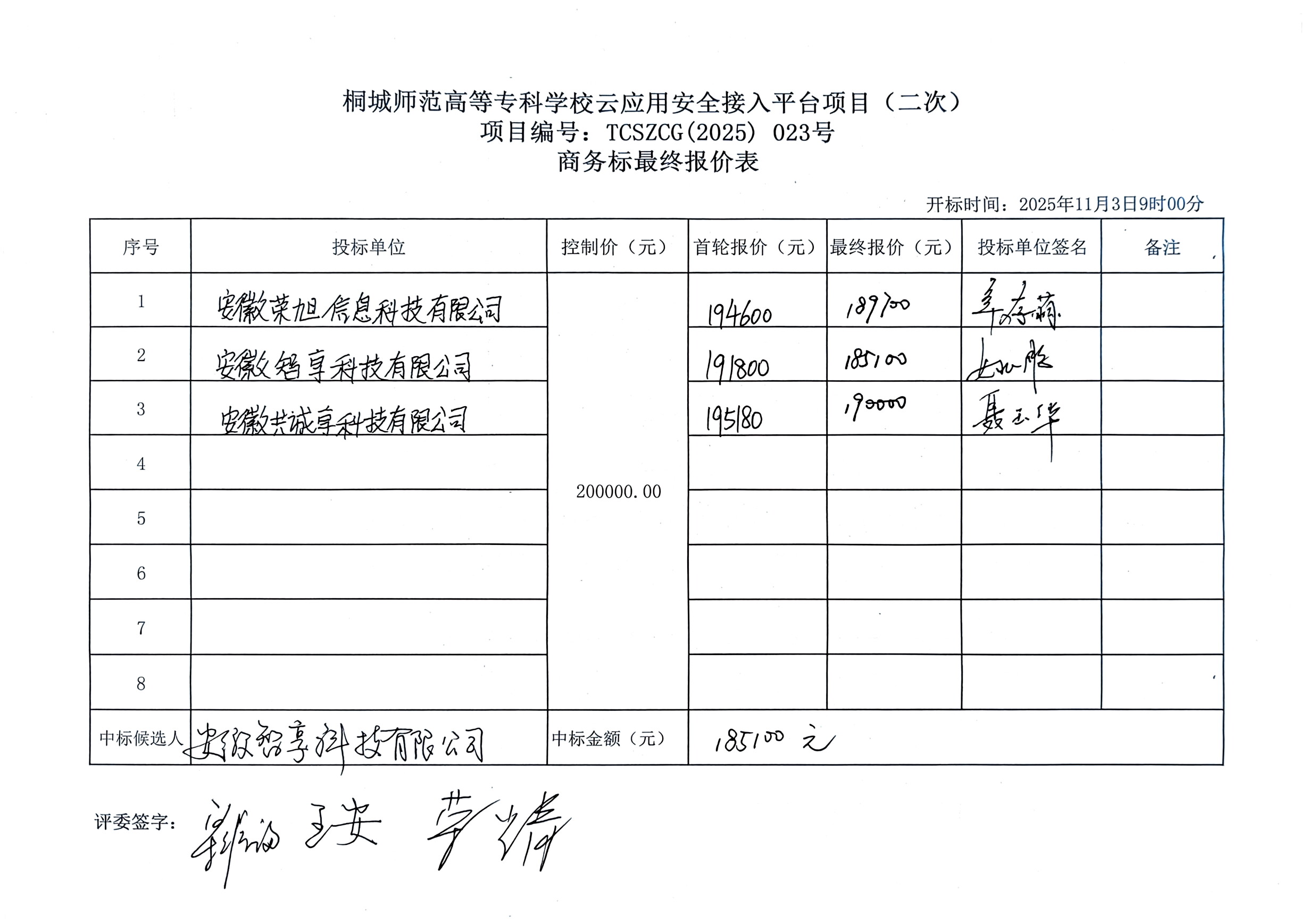 桐城師範高等專科學校雲應用安全接入平台項目(二次)中標結果公示