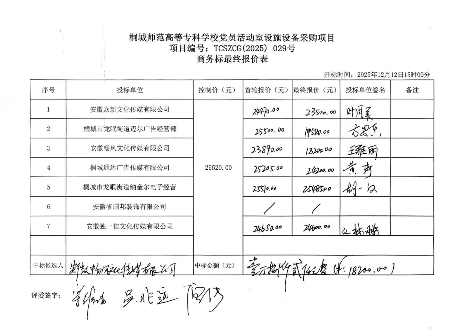 若投標人對上述結果有異議,可在中標(成交)公告期限屆滿之日起7個工作日內在工作時間以書麵形式在工作時間向采購人提出質疑(異議),質疑材料遞交地址:桐城師範高等專科學校,聯係電話:0556-6181669。