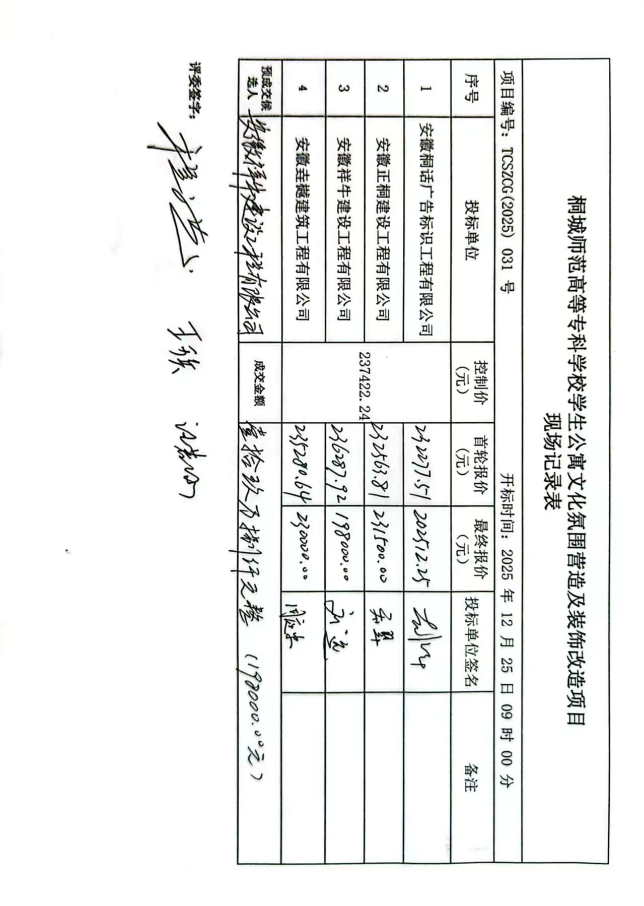 桐城師範高等專科學校學生公寓文化氛圍營造及裝飾改造項目中標結果公示