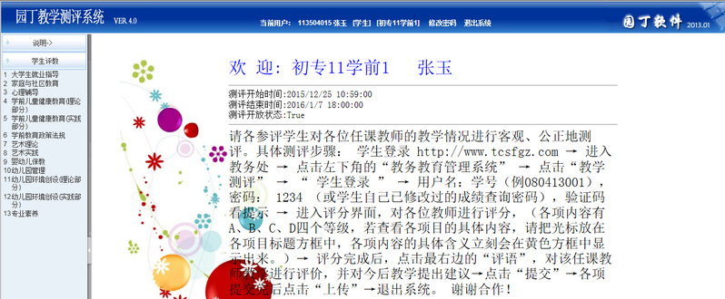 學生評教是檢驗和保證教學質量的重要手段。積極參與評教,是學生參與學校教學質量監控、推進教學改革應盡的義務,學生評教的結果對任課教師改進教學方法,提高教學質量具有十分重要的促進作用。