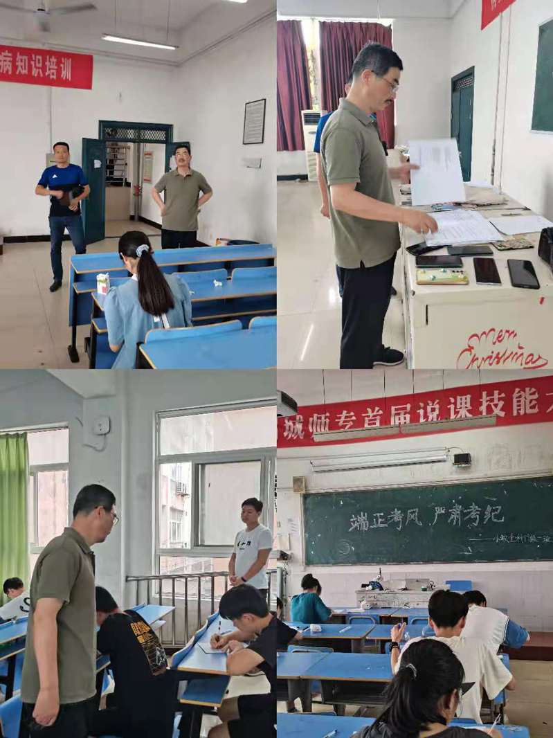 本學期期末考試筆試統考從6月24日上午開始,持續5天,共安排考試363場次,考生人數近3400人。考試之前,教務處組織召開期末監考教師考務會議;考試期間,學校成立由教務處牽頭,教學督導室、係部參與的聯合巡考組,每天深入各場次考場巡視,適時發布異常情況通報,多措並舉確保考試的公平、公正,促進優良學風和考風建設。