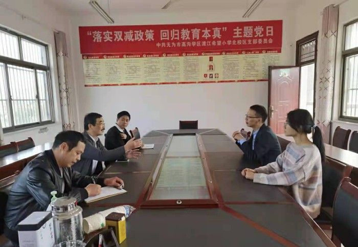 初專18級全科1班蔡欣悅在無為市渡江希望小學北校區實習,她告訴沈波,實習從日常聽課、帶小學科科目開始,不斷積累教學經驗,最大的難題是如何有效管理班級紀律。沈波教導實習生,班級管理要根據低、中、高年級層次的不同,采取不同的管理方法,具體到每個學生,還要考慮學生的生理、心理、成長背景的不同,采取有針對性的管理方式。他指出,實習生初為人師,剛走上講台,要特別關愛貧困家庭、特殊家庭學生。在與實習學校張校長座談時,沈波指出,國家正在實施鄉村振興戰略,鄉村教育是鄉村振興的重要內容,作為培養單位,关键词2要和當地教育局,實習學校加強合作,共同努力,培養更多優秀的鄉村教師,保障鄉村的教育質量。