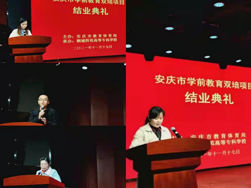 11月17日上午8點30分,2021年安慶市學前教育雙培項目結業典禮在音樂廳順利舉行。教務處處長黃洪沫出席並發表講話,教學班主任田紅豔、楊思亮,生活班主任占徐平出席。全體參訓學員參加。結業典禮由教務處副處長程愛蘭主持。