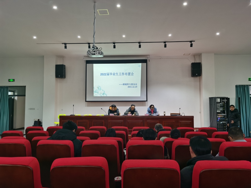 1229日下午4點,教務處在其昶樓報告廳召開2022屆畢業班工作布置會。教務處處長黃洪沫、教務處副處長程愛蘭、學生處副處長周琳出席會議,各係頂崗實習工作小組成員、畢業班輔導員參加會議。會議由教務處處長黃洪沫主持。
