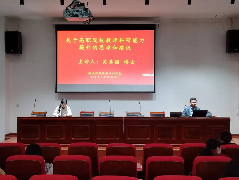 為貫徹落實黨的二十大精神,提升我校教師的科研素養,營造濃鬱的科研氛圍,4月4日下午,學校邀請安慶醫藥高等專科學校科技處副處長吳其國博士作題為“關於高職院校教師科研能力提升的思考和建議”學術講座,學校各係部負責同誌及各教科研項目主持人聆聽了本次講座。