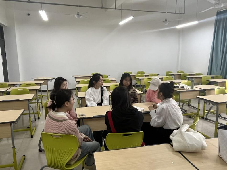 鄧婕與同學們圍坐一圈,以聊天的形式分享自己的心得。她強調考研過程中信息收集的重要性,要求同學們要重視所報考院校的官網信息,尤其要關注《招生簡章》中的專業目錄、參考書目和聯係方式等。在確定院校和專業後,她建議同學們要做精細化的學習計劃,對此她分享了自己各科的備考經驗,細致地介紹了政治、英語和專業課的學習方法,並推薦了相應的考研輔導老師。最後她提醒同學們考研過程中要保持好的心態,要有堅定的考研信念。