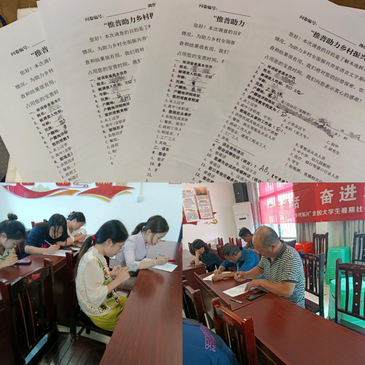 隨後,團隊成員來到當地鄉政府,深入每一個辦公室進行隨機采訪並發放了“推普助力鄉村振興”調查問卷。