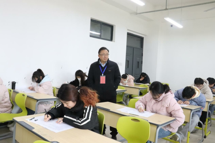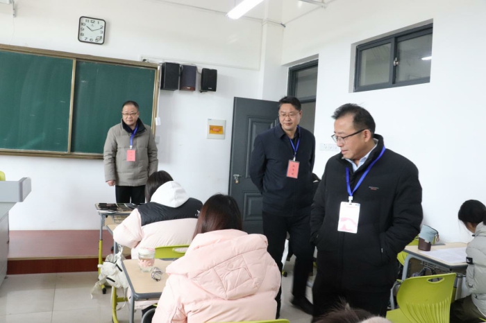 學校2024-2025學年第一學期期末考試集中於近日全麵開展。1月6日上午,黨委書記王子龍,校黨委委員、副校長王宏偉,校黨委委員、宣傳部長伍建強帶領教務處及各院係相關負責同誌深入考場巡查期末考試工作,了解考試組織管理和考風考紀情況。