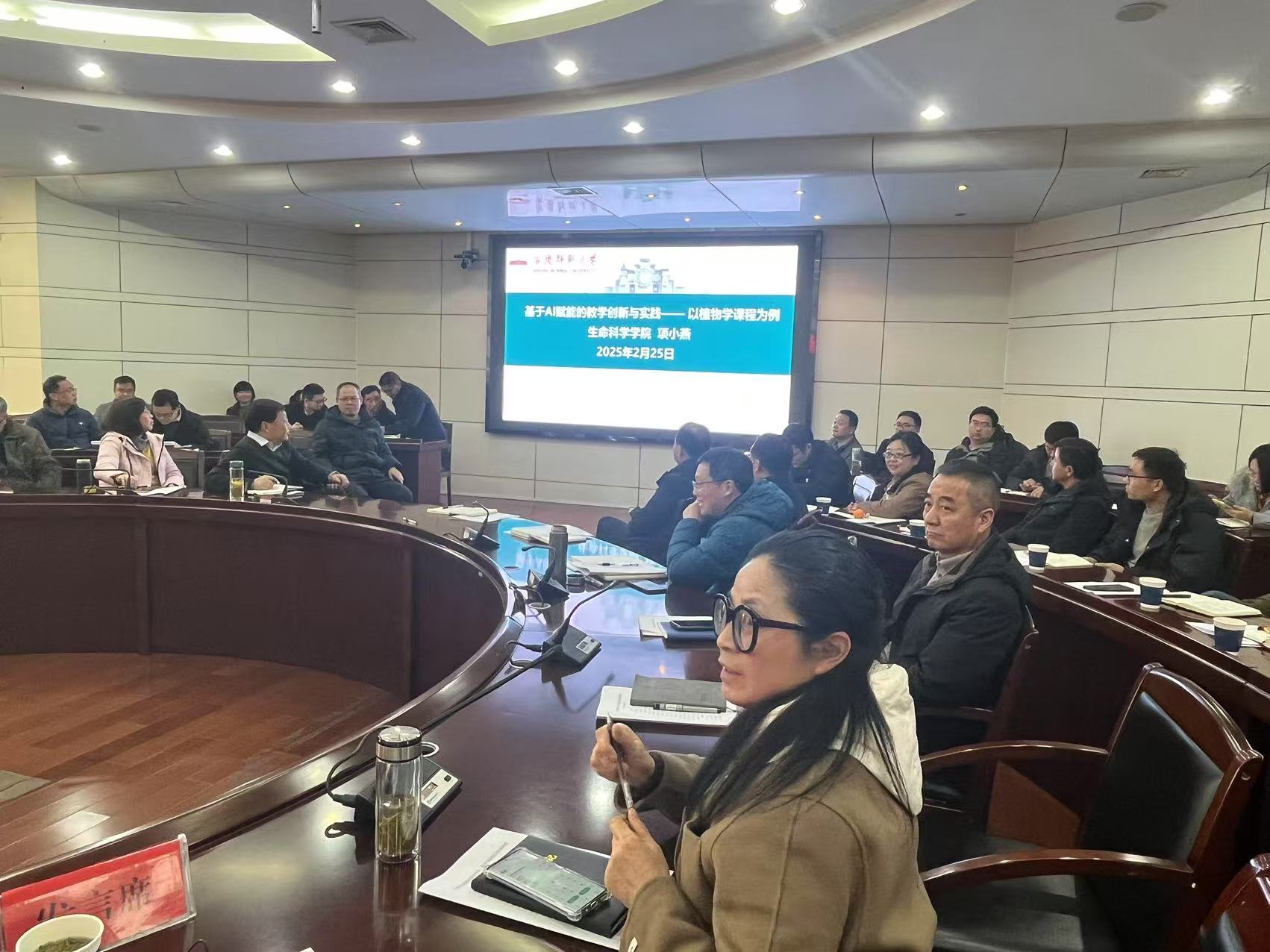 此次會議特別邀請了生命科學學院項小燕教授與電子工程與智能製造學院劉全金教授,分別圍繞“基於AI賦能的教學創新與實踐——以植物學課程為例”和“深度學習——DeepSeek及其調用”作專題報告。