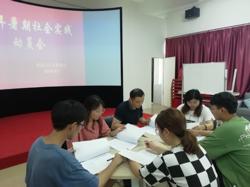 6月25日下午四點,旅管係暑假社會實踐動員會議於毓秀樓A601教室舉行,旅管係學生管理副主任葉茂同誌出席會議,團隊全體成員參加會議,會議由團總支書記倪潔主持。