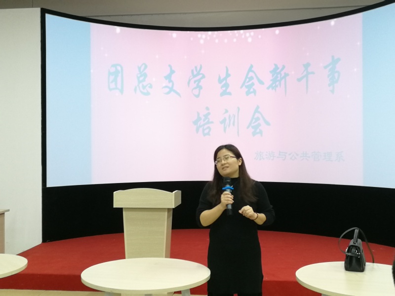 10月25日晚我係在A601隆重舉行2018級團總支學生會新幹事培訓大會,會議由旅管係團總支書記倪潔老師主持。