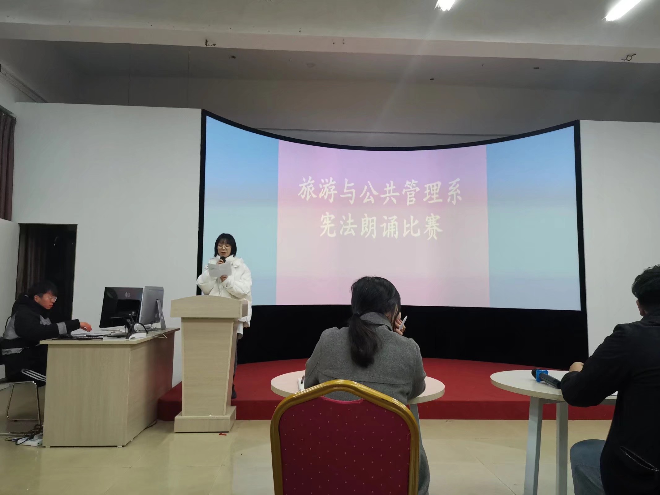 2019129號晚上6.30桐城師範高等專科學校旅遊與公共管理係在A601開展了憲法朗誦征文比賽