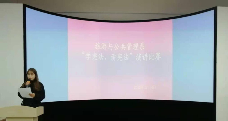 此次活動以憲法為主題在學生會成員的組織領導下,圍繞選手演講、評委打分以及評選三個環節展開。比賽中,同學們精神抖擻,他們或從憲法的含義開始、或以憲法小故事為開端、或用真實案例從多方麵剖析,向在場觀眾分析了學憲法、講憲法對同學們成長成才的重要性,同時也闡明了憲法的權威性、原則性。參賽選手們沉著自信、慷慨激昂的演講,贏得了台下陣陣掌聲。