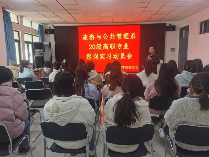 根據旅遊、酒店兩專業人才培養方案要求,我係安排20級旅遊、酒店管理專業本學期進行跟崗實習。由於疫情等原因,本次實習主要集中在合肥、蕪湖實踐教學基地開展。2月21日至25日,跟崗實習準備周中,我係聯合相關實踐教學基地進行了跟崗實習宣講。根據學生意願,結合企業要求,進行了實習具體安排。