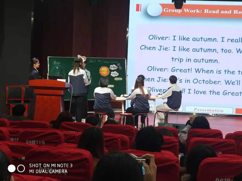 為了豐富劉念同學的教學體驗,鍛煉其膽量,关键词2精心安排其在安徽省第三屆小學英語研討會上進行示範表演,特邀安慶市英語教研室的特級教師陳俊教研員進行點評。此次展示得到了與會專家的一致好評,特別是陳俊老師的意見和建議為日後的改進提供了保障。