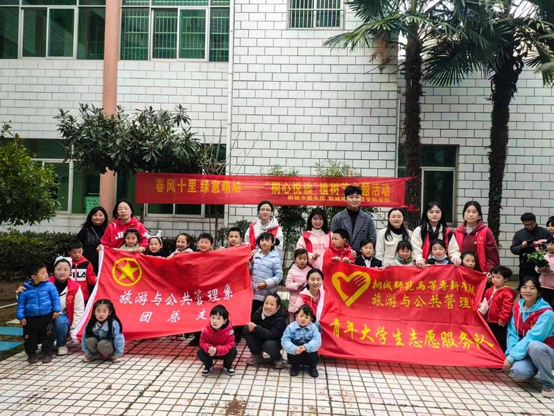 陽春三月,萬物複蘇,正是植樹綠化好時節。為進一步提高青年大學生們愛綠植綠護綠的文明風尚,踐行“奉獻、友愛、互助、進步”的誌願服務精神。312日下午,桐城師專旅遊與公共管理係團總支組織係青年誌願者走進桐城市圖書館,與桐城市圖書館誌願者聯合開展“春風十裏,綠意萌動”植樹節主題活動。桐城市圖書館約30餘名小讀者與家長也參與此項活動。