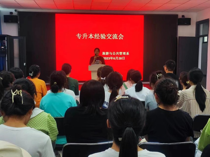 6月28號下午,旅管係在旅遊實訓室舉辦專場專升本交流會。高專20英語張越等同學和21英語、高鐵、22 英語等專業的近100位同學進行了麵對麵的交流。學姐們從專升本輔導機構的選擇、周末公共課的學習、寒暑假專業課的集訓、考前衝刺等環節和學弟學妹們進行了深入細致的交流。她們還解讀了如何從心裏上,身體上和專業上備戰專升本,如何度過備考的“高原期”。在場的同學們還就自己關心的專升本相關問題向學姐們取經。交流會現場氣氛熱烈,準備專升本的同學情緒高漲,信心滿滿。紛紛表示向學長學習,勤奮學習,積極科學備考,爭取早日上岸,不負青春,不負韶華。