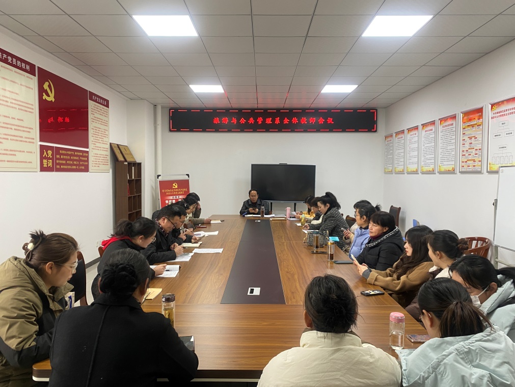 2025年2月19日下午,旅遊與公共管理係在旅管係黨員活動室召開全體教師會議,全體教職工參加了此次會議。