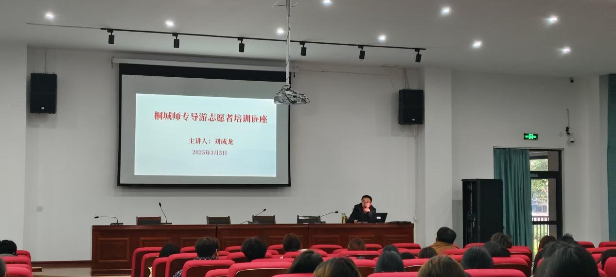 2025年3月5日星期三,旅遊與公共管理係導遊誌願者培訓講座在其昶樓報告廳舉辦。此次講座由我係日語導遊教師劉成龍擔任主講。此次講座旨在幫助同學們深入了解導遊職業,提升我係學生旅遊專業素養,宣傳桐城優秀傳統文化。