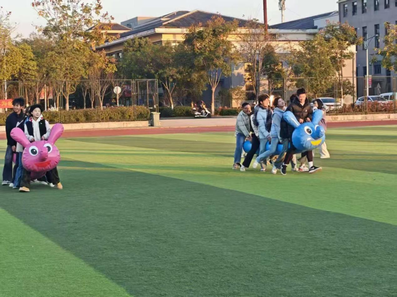隨後進行的毛毛蟲項目更是趣味十足。參賽隊員們跨坐在充氣毛毛蟲道具上,同步抬腳、協同前進,既要保持節奏一致,又要全力衝刺。大家相互配合、彼此鼓勁,有的隊伍動作整齊劃一、一路領先,有的隊伍雖偶有失誤卻迅速調整狀態,在歡聲笑語中完成比賽。整個過程既考驗了隊員們的協作能力,也讓大家在運動中收獲了純粹的快樂。