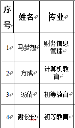 根據省教育廳《關於評選上報2018年安徽省普通高等學校品學兼優畢業生名單的通知》和《安徽省普通高等學校品學兼優畢業生評選辦法》文件精神 ,經學生申請,班級成立評議小組,班主任(輔導員)組織學生民主評議、係部初審,擬評出我係省級品學兼優畢業生馬夢想等4名同學,現將結果予以公示:
