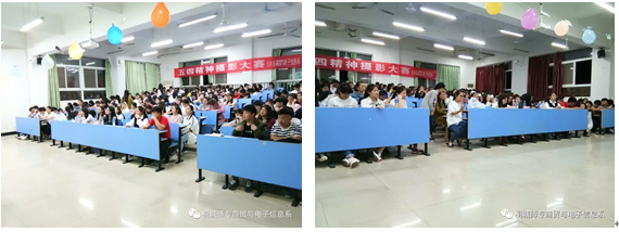 為了豐富大學生文化生活,提升大學生攝影技能。2018年5月3日晚,由商貿與電子信息係主辦的桐城師範高等專科學校商貿與電子信息係第一屆五四攝影大賽在以智樓二樓階梯教室舉行。本次活動的主題為《捉“風”捕“影”,傳遞美的瞬間》。商貿與電子信息係彭卉卉老師、小學教育係吳亞男老師和潘波波老師受邀擔任此次比賽的評委。