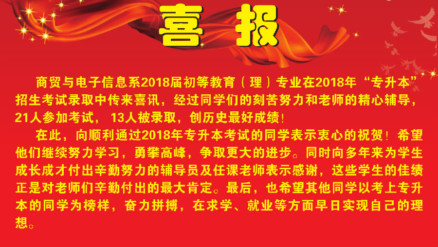 喜報:祝賀我係初等教育(理)專業同學在專升本考試中取得佳績