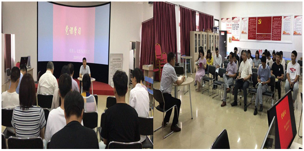 6月13日,商貿與電子信息係黨支部在六樓黨員活動室上了一堂“不忘初心、牢記使命、立足崗位做貢獻”的專題黨課。黨課由校黨委委員、紀委書記陳發明講授,支部書記蘇澤軍主持。