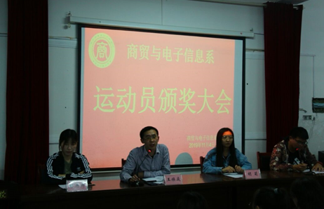 11月4日晚,商貿與電子信息運動會總結表彰在大學生活動中心舉行,王煥庭主任、彭卉卉老師、胡莉老師等參加本次會議。