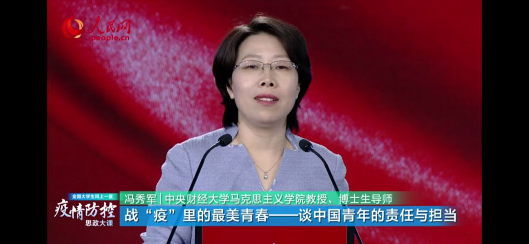馮秀軍教授從中國青年的角度出發,談中國青年的責任與擔當,論述了青年人在責任和擔當中的“蝶變”。她用此次奔赴抗疫一線的醫護人員中有三分之一是90後、00後這樣一組數據,以及他們在一線樂觀開朗、艱苦奮鬥的事跡,定義了破繭成蝶的“非典型青春”。她又援引紅軍長征途中一個團為一個嬰孩打仗的故事以及1992年生的李宗玉在第一時間請戰一線的故事,闡明了愛國是青年諸多責任之中最重要的責任擔當。在國家和民族的曆史傳承之中,青年是每一個時代的接棒人,他們是救亡圖存的一代,是建設國家的一代,是強國富民的一代。青年在這場戰“疫”中須胸有大誌、心有大我、肩有大任,必能譜寫“大寫青春”,必能助力這場戰鬥取得最終勝利!