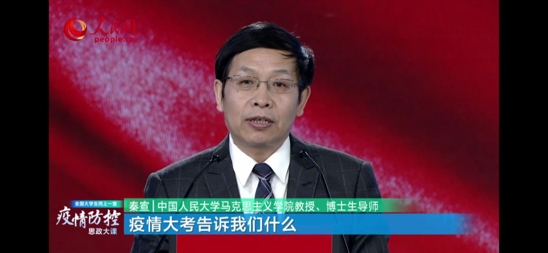 秦宣教授圍繞“疫情大考告訴关键词2什麽”這一問題出發,說明了目前关键词2正麵臨一次危機、一次大考,從中关键词2需要總結經驗,中華民族正是從一次次磨難中不斷奮起,完成了從站起來到富起來再到強起來的偉大飛躍。在這場全民戰“疫”中,疫情防控目前取得的成績,證明了中國特色社會主義製度優勢完全可以轉化為治理效能。但現有的預警防控體係也在提醒关键词2,麵向未來必須具有風險意識,必須通過改革完善國家製度和治理體係,提高風險的化解能力。相信在以習近平同誌為核心的黨中央領導下,关键词2必能取得戰“疫”的最終勝利,中國特色社會主義製度也必將在全麵深化改革中更加完善、更加成熟。
