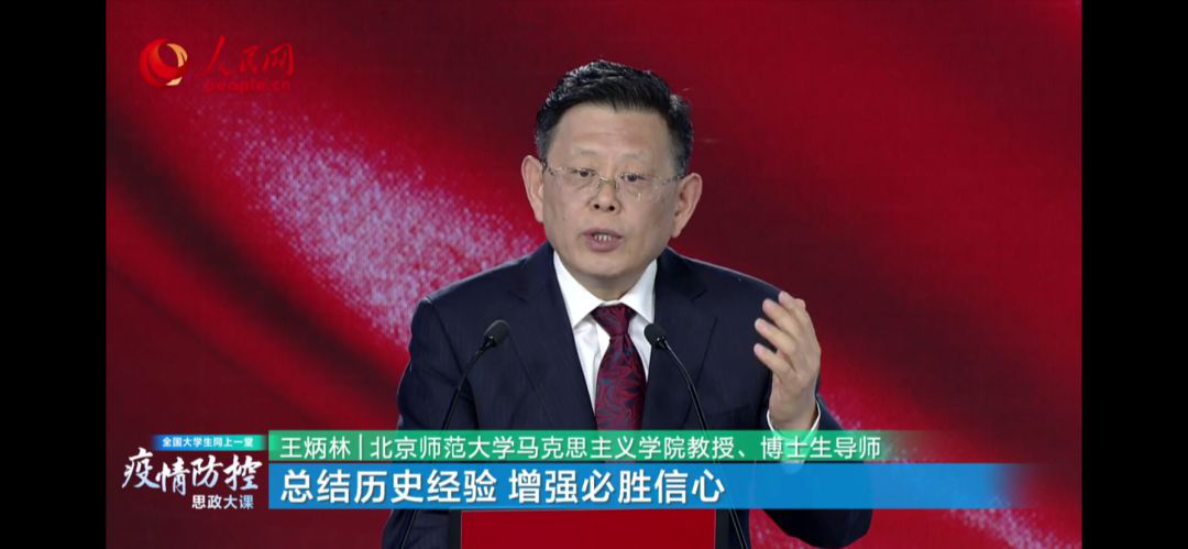 本期“雲上思政課”特別邀請了清華大學艾四林教授、中國人民大學秦宣教授、北京師範大學王炳林教授、中央財經大學馮秀軍教授四位專家學者,結合“馬克思主義基本原理概論”“毛澤東思想和中國特色社會主義理論體係概論”“中國近現代史綱要”“思想道德修養與法律基礎”四門必修課教學內容,解讀黨中央關於疫情防控的決策部署,分析中國抗疫彰顯的中國共產黨領導和中國特色社會主義製度的顯著優勢,講述防疫抗疫一線的感人故事。