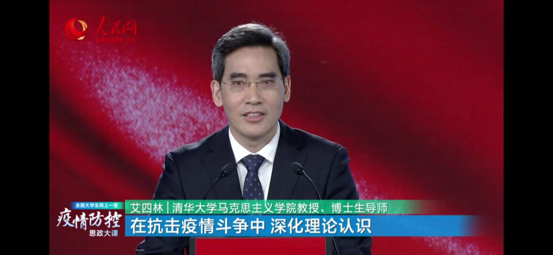 “習近平總書記多次召開會議,作出重要指示,親自指揮、親自部署,全國上下團結奮戰、眾誌成城。抗擊疫情的鬥爭,是一堂現實的思政課、一堂鮮活的思政課、一堂深刻的思政課、一堂難忘的思政課。”艾四林教授在開課伊始說道。他以“在抗擊疫情鬥爭中 深化理論認識”為主題,從辯證唯物主義和曆史唯物主義角度,論述了中國共產黨人堅持群眾路線,把人民群眾的生命安全和身體健康放在第一位的初心使命。又從武漢華南海鮮市場的野味交易這一熱點話題出發,引出“人與自然的關係”,從而闡述“人和自然是個有機整體”,提倡文明健康、綠色環保的生活方式。最後他提出,經過此次疫情,关键词2需要構建戰“疫”命運共同體,總結經驗,全世界一起,共同戰“疫”。