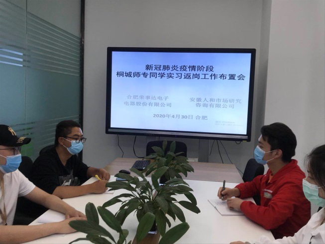 商貿與電子信息係2017級學生將於2020年5月6日開始分批赴各單位開展頂崗實習工作,為保障學生返崗後的安全健康和實習工作的有序開展,受係頂崗實習工作領導小組委托,係副主任徐偉一行組成實習防疫安全工作組,於2020年4月29日赴合肥榮事達電子電器股份有限責任公司等集中實習實踐基地開展返崗前防疫專項安全檢查工作。